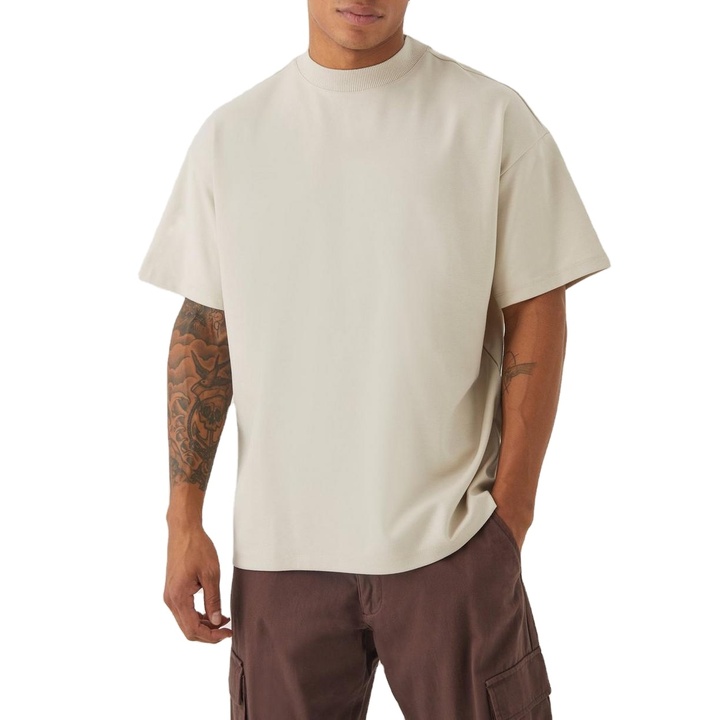 Camiseta de Algodón 100% de 250-270 GSM, Extra Grande, con Logotipo Personalizado, Cuello de Canalé Grueso, Ecológica y Transpirable, de Alta Calidad